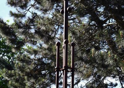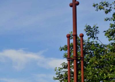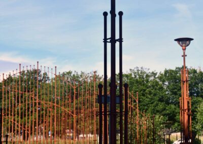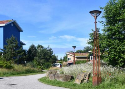 Wie door het Duinpark loopt kan ze eigenlijk niet missen. De straatlantaarns van de hand van Ruud van de Wint. Heel herkenbaar aan het gebruik van het Cortenstaal. Maar ook de paaltjes met de bollen er op die ook o,a, gebruikt worden bij de bruggen in hetzelfde park.
