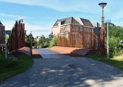 Eén van de twee bruggen die Ruud van de Wint heeft ontworpen voor het Duinpark. Deze brug is goed te zien vanaf de Jan Verfailleweg.