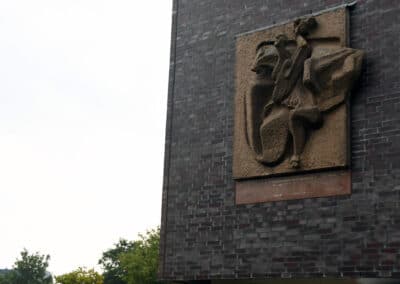 Het plaquette onder het kunstwerk (nu niet meer goed leesbaar) geeft uitleg.